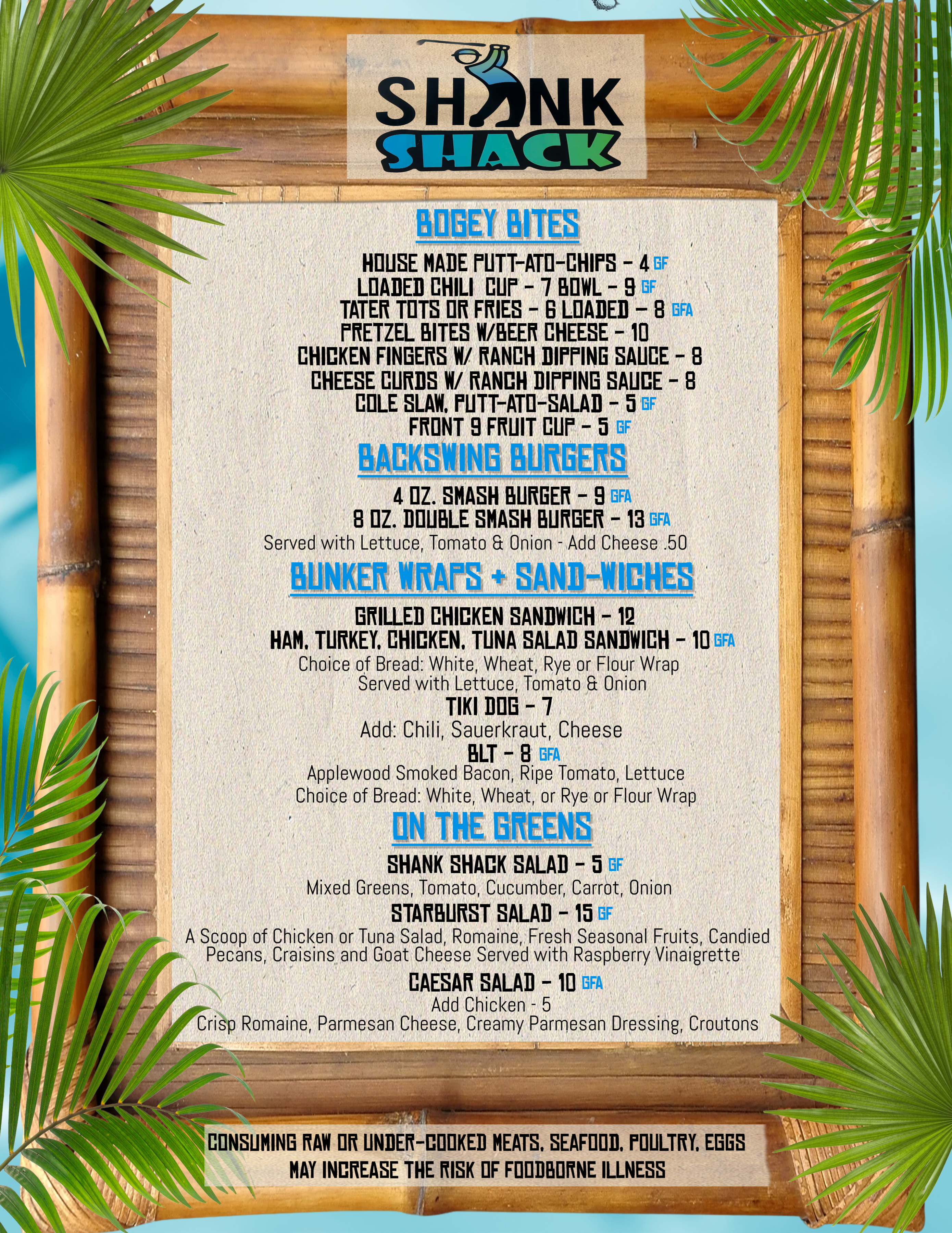 Shank Shack Menu